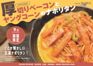 9月は『厚切りベーコンとヤングコーンのナポリタン』です